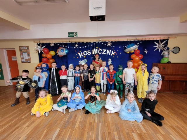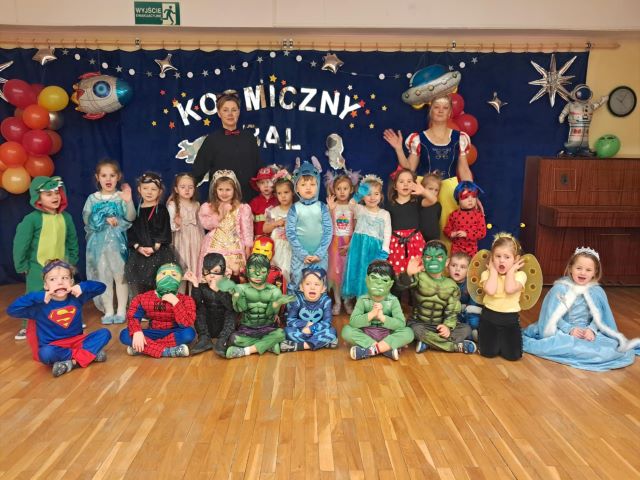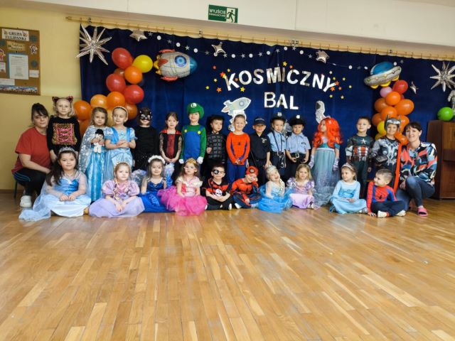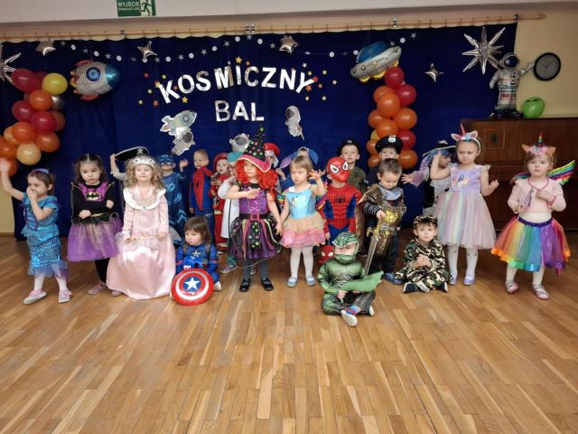 Motywem przewodnim tegorocznego balu był Kosmos. Już od rana w przedszkolu pojawiały się kolorowe postacie. Przedszkolaki przebrane były za bohaterów z różnych bajek, filmów oraz za służby mundurowe. W salach przedszkolnych można było spotkać między innymi: wróżki, królewny, rycerzy, piratów, policjantów, nie sposób zliczyć i wymienić tych wszystkich postaci. Podczas balu panowała bardzo radosna atmosfera, wszytskie grupy bawiąc się i tańząc miały okazję na wspólną integrację.