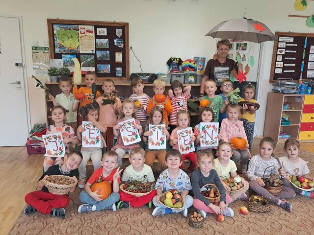 Dziś nasze przedszkole rozkwitło w jesiennych barwach – dzieci przyszły ubrane w kolory liści: czerwienie, pomarańcze, złoto i brązy. Były piosenki, zabawy, rozmowy o darach jesieni i piękne prace plastyczne .To był magiczny, pełen radości dzień!