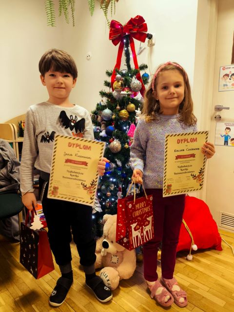 Jakub i Kalina z grupy Tulipanki brały udział w Ogólnopolskim Konkursie Plastycznym "Najładniejsza Kartka Bożonarodzeniowa".